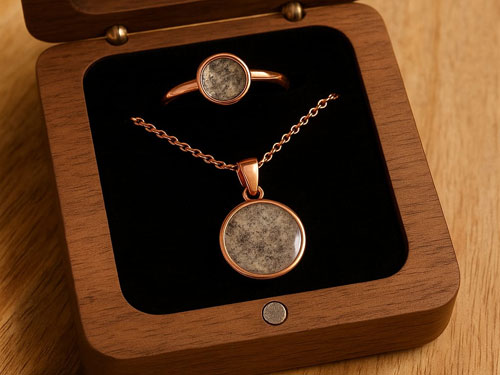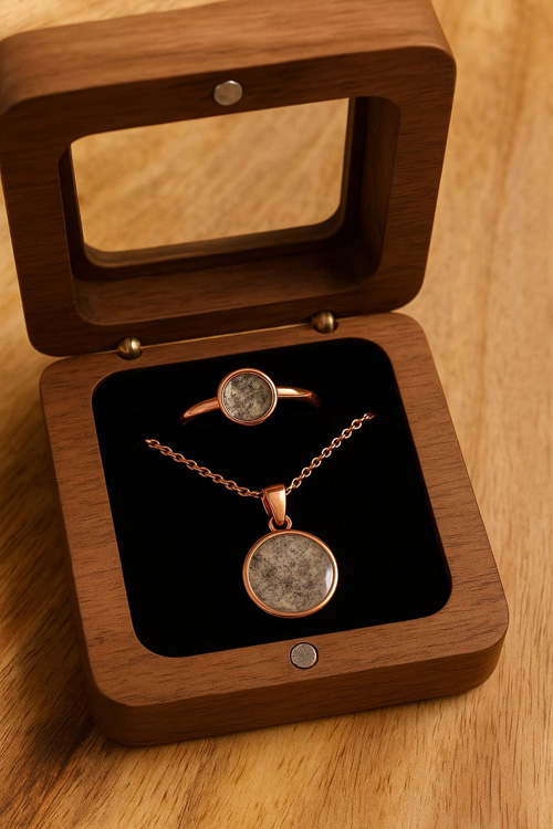 Bewahren Sie die Erinnerung an einen geliebten Menschen in einem ganz besonderen Schmuckstück. Wir fertigen individuellen Schmuck mit der Asche Ihres verstorbenen Angehörigen – ganz nach Ihren persönlichen Wünschen. Jedes Stück ist ein Unikat, mit Liebe und Respekt handgearbeitet – als Anhänger, Ring oder Armband.