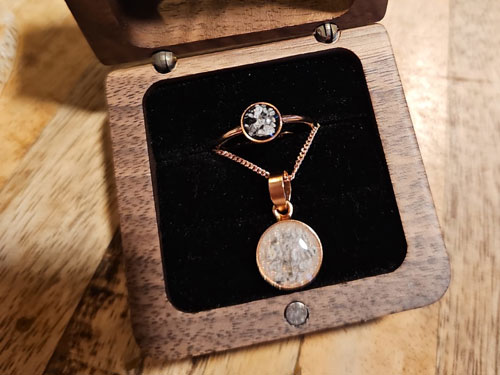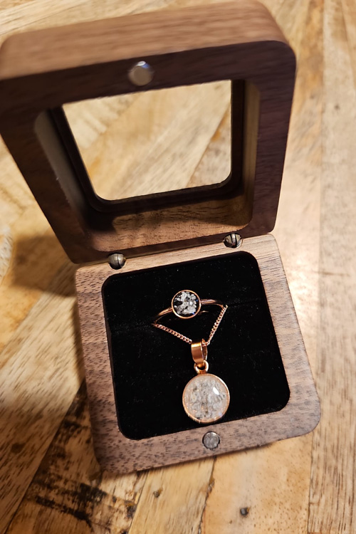 Bewahren Sie die Erinnerung an einen geliebten Menschen in einem ganz besonderen Schmuckstück. Wir fertigen individuellen Schmuck mit der Asche Ihres verstorbenen Angehörigen – ganz nach Ihren persönlichen Wünschen. Jedes Stück ist ein Unikat, mit Liebe und Respekt handgearbeitet – als Anhänger, Ring oder Armband.